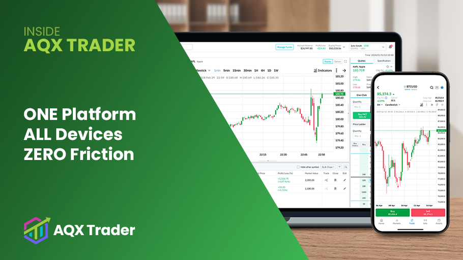Modern traders refuse to choose between power and flexibility. AQX Trader eliminates this compromise entirely. From comprehensive desktop charting and detailed execution workflows to responsive mobile interfaces with real-time push alerts, the platform supports every phase of the trading journey.